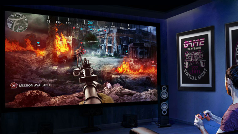 Modern oyun projektörleri, standart televizyonlardan daha iyi sonuçlar ve daha iyi resimler üreten ultra yüksek yenileme hızları sunar. Çoğu televizyon, önemli giriş gecikmesine sahip olduğu için rekabetçi oyunlar için uygun değildir. Ancak, bir projektör genellikle daha az maliyetli olmasına rağmen minimum giriş gecikmesine sahiptir. Dahası, modern teknoloji projektörlerin yüksek görüntü kalitesi özellikleri, renk derinliği, gecikme ve çözünürlük açısından günümüzün modern TV’leriyle rekabet etmesini sağlamıştır. - Optimize Edilmiş Oyun Deneyimi
